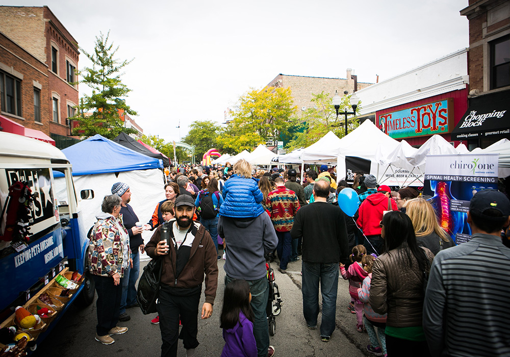 Dozens of vendors and thousands of patrons partake in the annual Apple Fest celebration at the beginning of fall, featuring everything from candy apples to scarves and hats. Photo courtesy Lincoln Square Ravenswood Chamber.