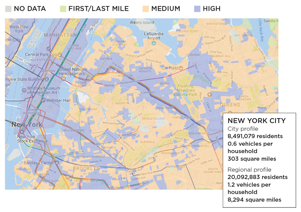 New York City Profile: 8,491,079 residents; 0.6 vehicles per household; 303 square miles