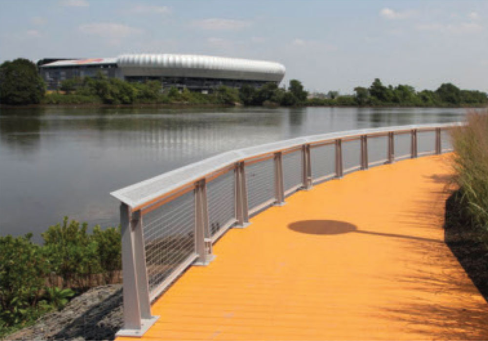 In 2007 the city partnered with The Trust for Public Land to design and build a seven-acre park on publicly owned land in the Ironbound neighborhood. Public meetings informed project partners, including the Ironbound Community Corporation, of community desires and suggestions. Led by landscape architect Lee Weintraub, the team developed a design for the narrow site based on the design guidelines established during the community process: public access to the water, places for passive recreation and gathering, and a reflection of the history of the site.