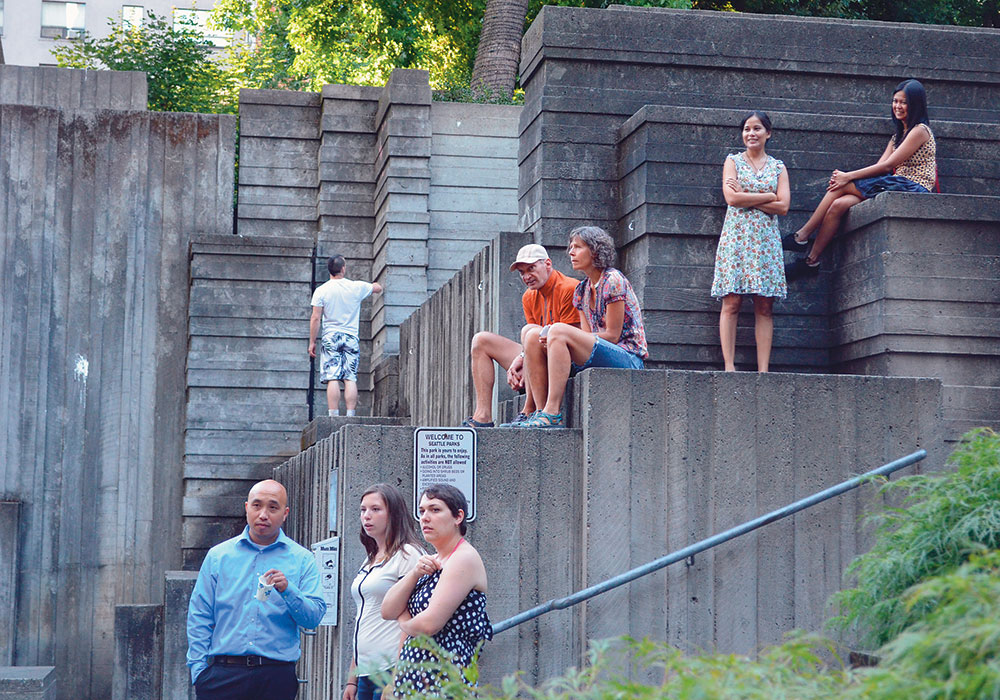Seattle's five-acre Freeway Park opened in 1976 and inspired other cities to build their own deck parks. Photo courtesy Freeway Park Association.