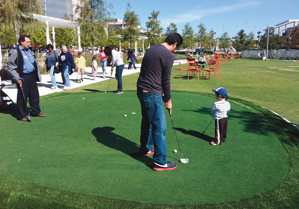 A putting green in Dallas's Klyde Warren Park. Photo courtesy Klyde Warren Park.